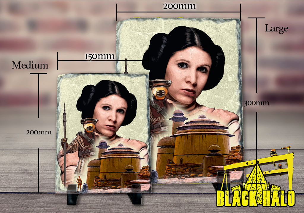 Star Wars inspired Princess Leia: Boushh artwork on Solid Rock Slate