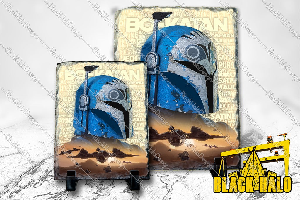 Star Wars Inspired Bo-Katan Double exposure artwork on Natural Rock Slate