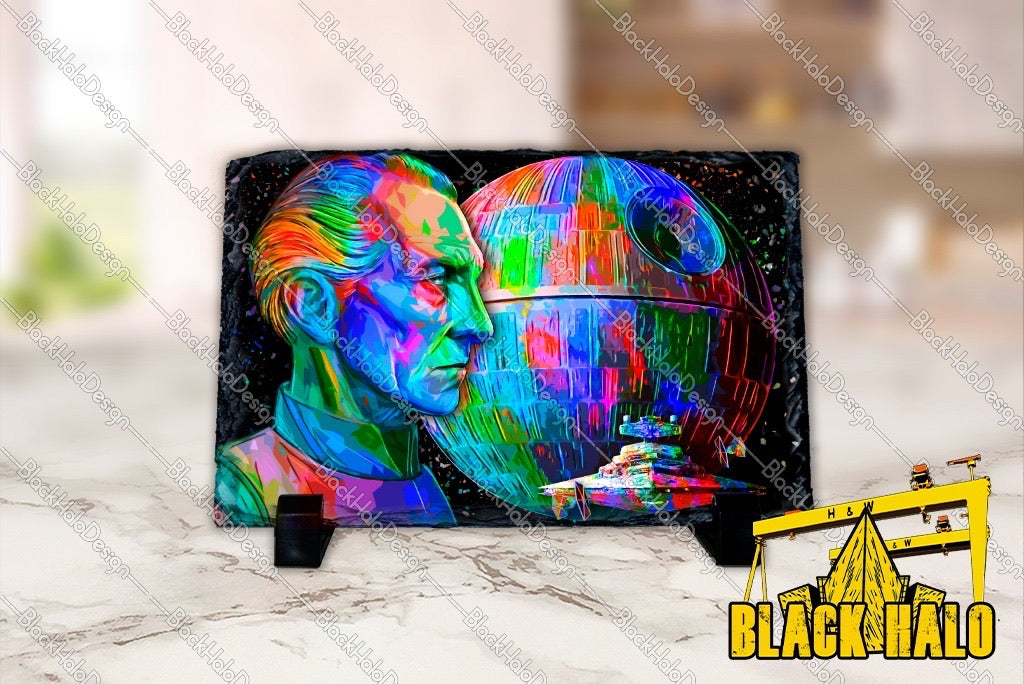 Star Wars Inspired Grand Moff Tarkin artwork on Natural Rock Slate with Stands