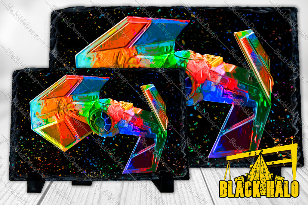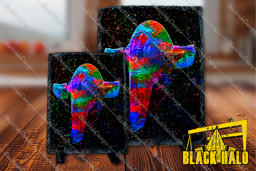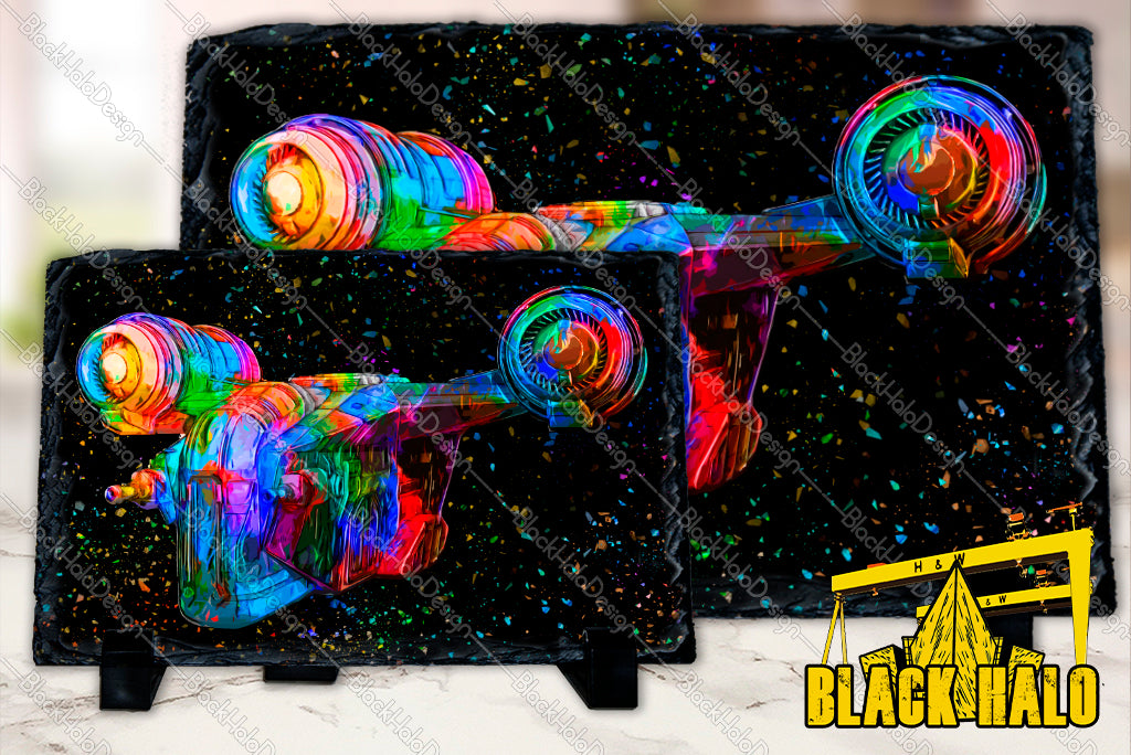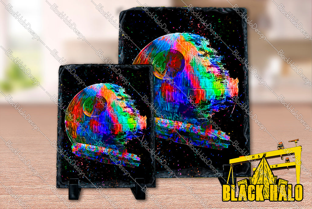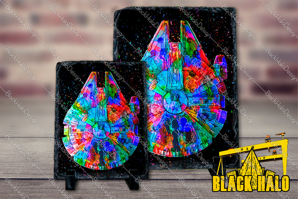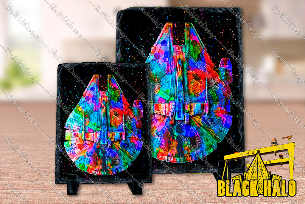 Star Wars Inspired ships and vehicles artwork on Natural Rock Slate with Stands